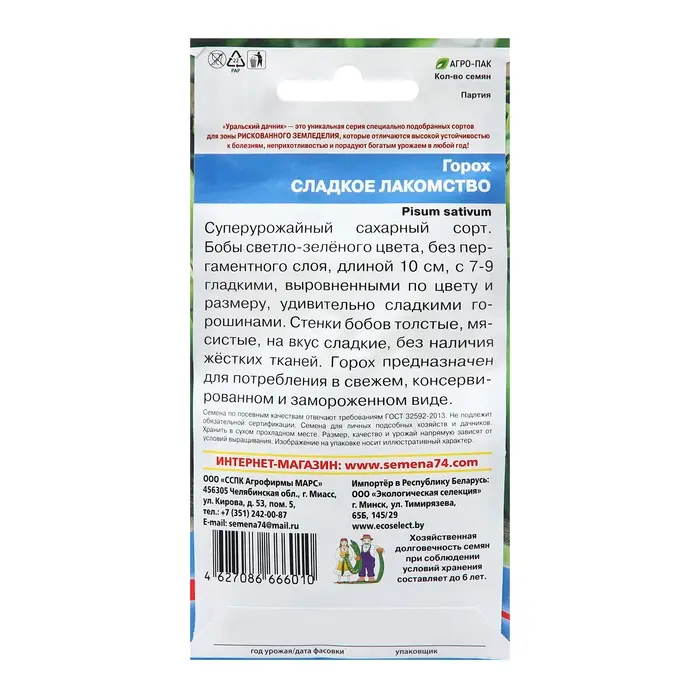 Семена Горох "Сахарный Стручок", среднеспелый, ц/п, 10 г