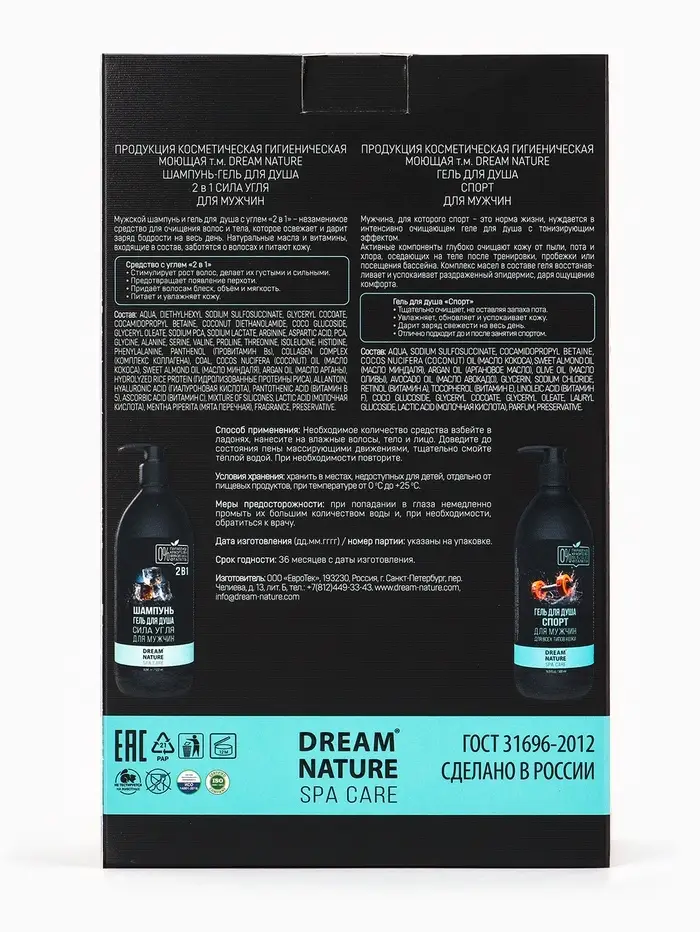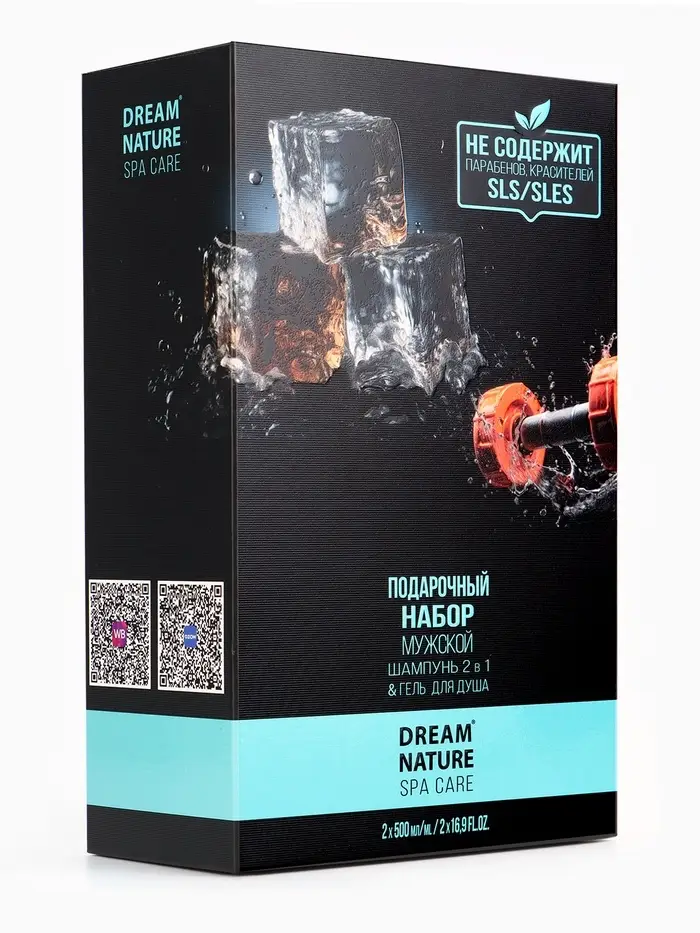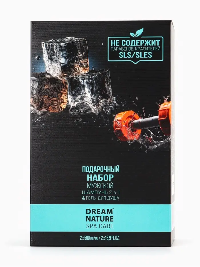 Подарочный набор мужской DREAM NATURE SPA CARE "Сила льда": шампунь 2 в 1 и гель для душа, по 500 мл