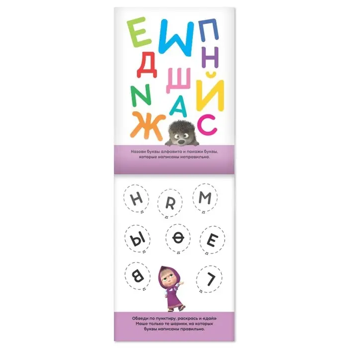 Яркие иллюстрации с любимыми героями из мультфильма «Маша и Медведь» сделают занятия веселее и интереснее.