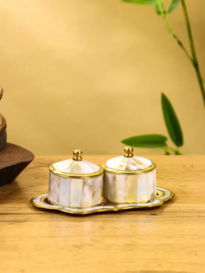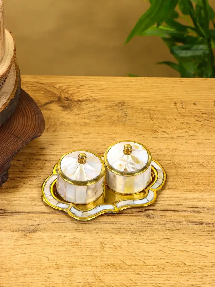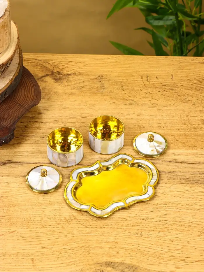 Набор шкатулок на тарелочке «Сокровища Агры», латунь с перламутром, 9×13×5 см