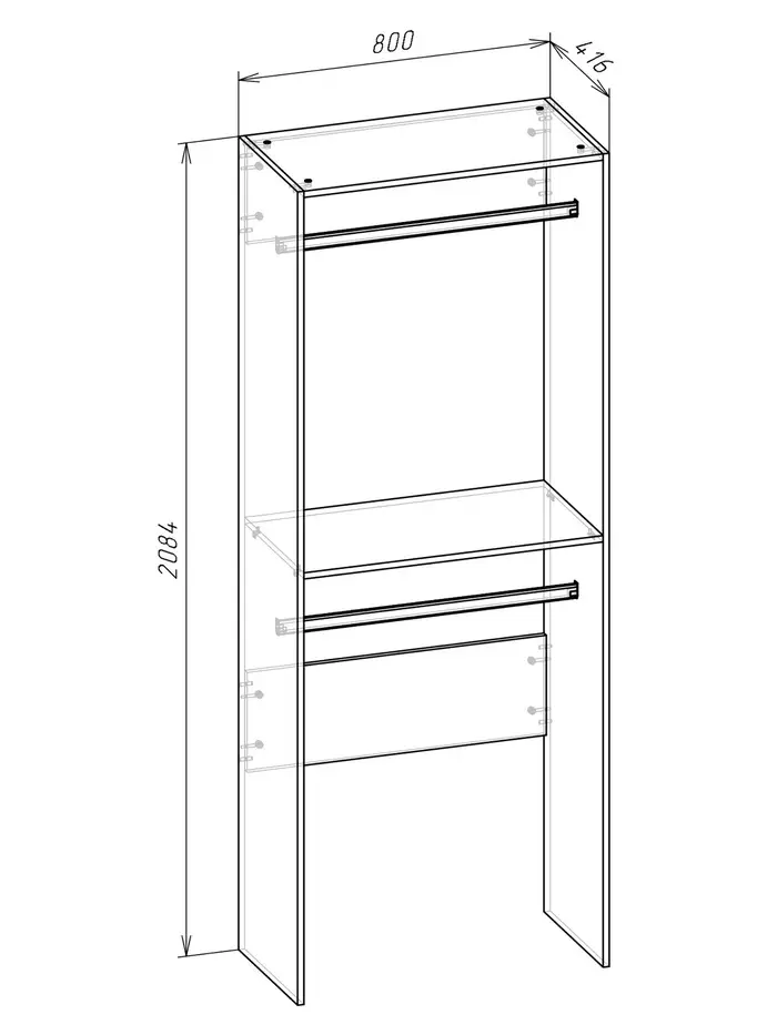 Вешалка модульной гардеробной системы «Модус», 2090×800×420 мм, цвет белый