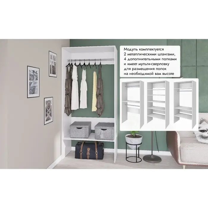 Вешалка модульной гардеробной системы «Модус», 2090×1000×520 мм, цвет белый