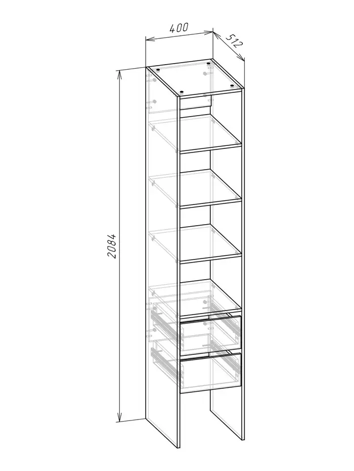 Стеллаж модульной гардеробной системы «Модус», 2090×400×520 мм, цвет белый