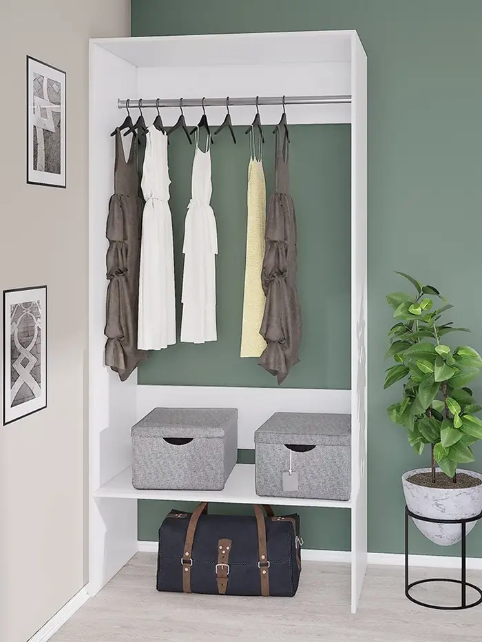 - Белый цвет: придаёт гардеробной элегантный и современный вид, который гармонично впишется в любой интерьер.