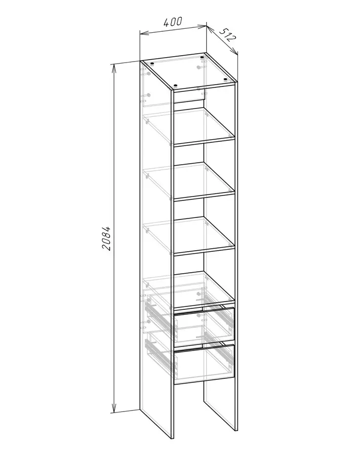 Стеллаж модульной гардеробной системы «Модус», 2090×400×520 мм, цвет белый