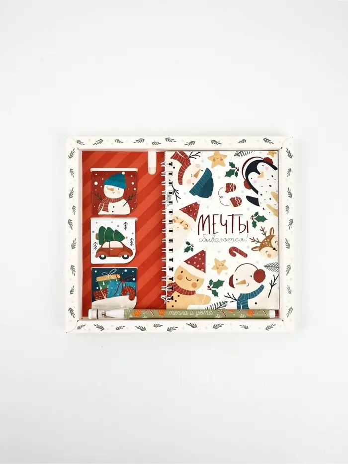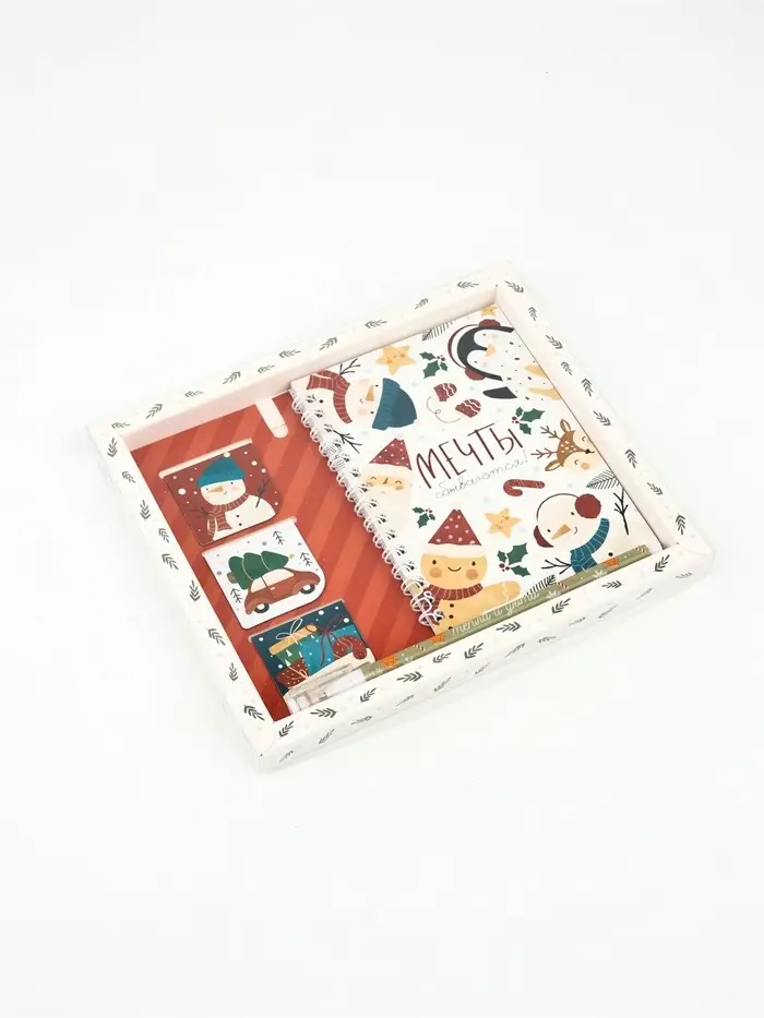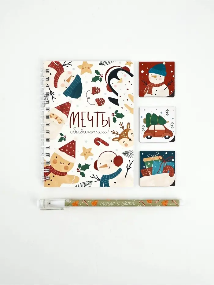 Набор блокнот на спирали, магнитные закладки 3 шт и ручка пластик "Акварель"