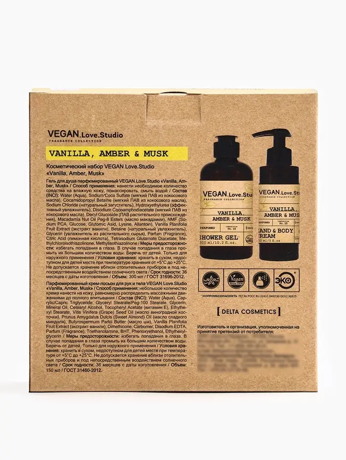 Набор женский VEGAN.Love.Studio "Vanilla, Amber, Musk": гель для душа 300 мл + крем-лосьон 150 мл 10