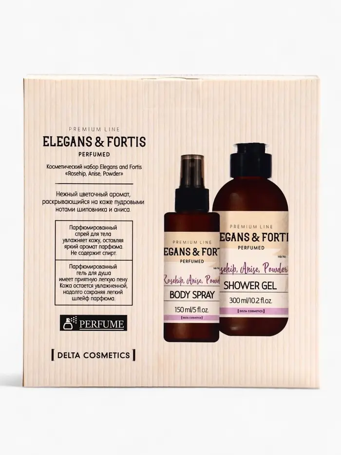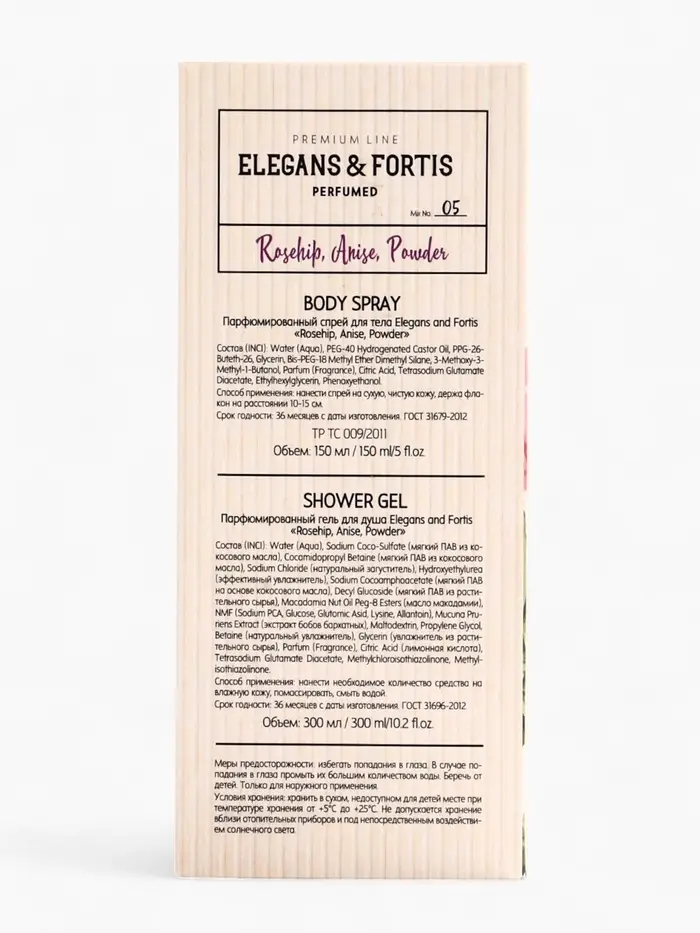 Набор женский VEGAN.Love.Studio "Rosehip, Anise, Powder": гель для душа 300 мл + спрей для тела 150
