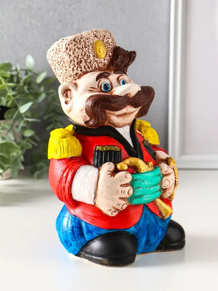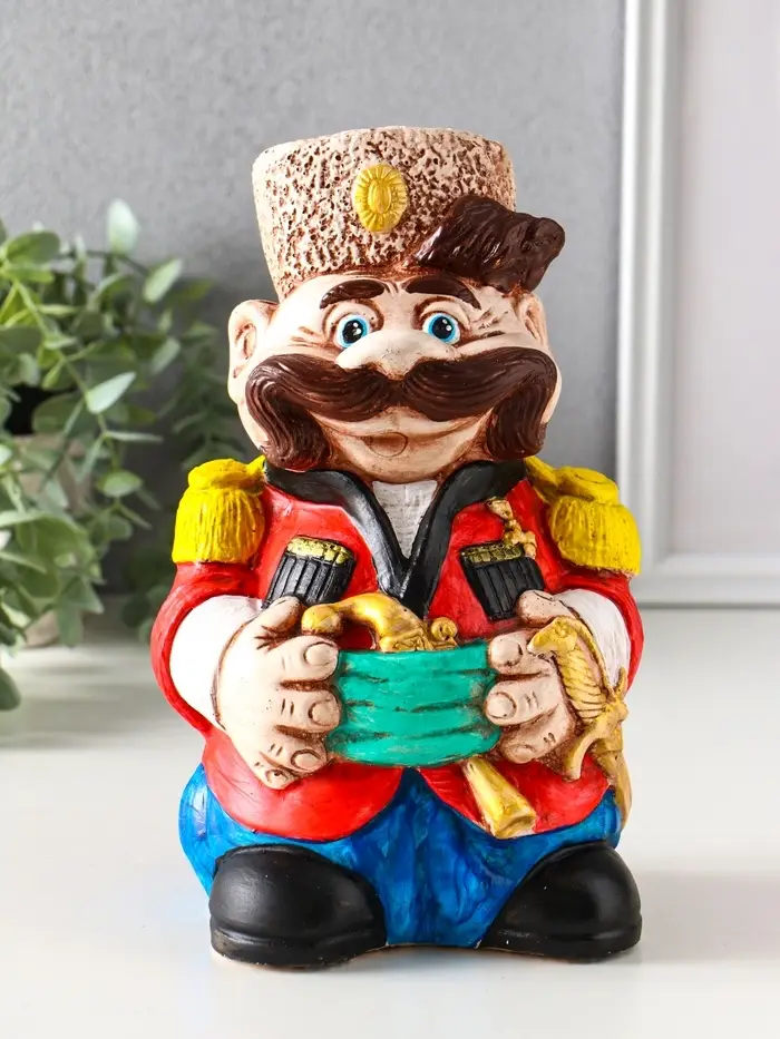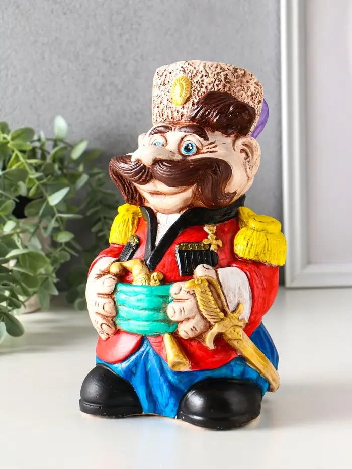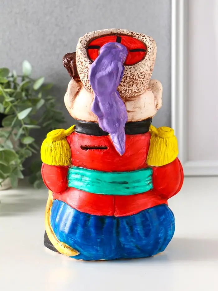 Эта гипсовая копилка в виде генерала — не просто сосуд для монет, а настоящий страж ваших финансов. Его внушительный вид и закрытая конструкция создают ощущение надёжности, превращая процесс накопления в осознанный ритуал. Каждая опущенная монета — это шаг к вашей большой цели.