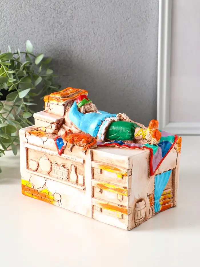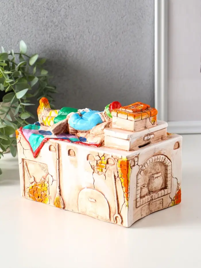 Эта гипсовая копилка в виде сказочной печки станет верным помощником в обучении ребёнка финансовой грамоте. Она превращает процесс накопления в маленькое волшебство, где каждая монетка — это дровца для топики, а купюры — драгоценный жар. Прочный гипсовый корпус делает её долговечным спутником детства.