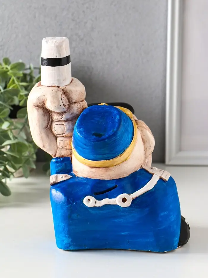 - Узнаваемый образ: Фигурка гаишника в фирменной форме и фуражке передана с детальной точностью. Яркий окрас подчеркивает детали образа, делая копилку живой и выразительной.