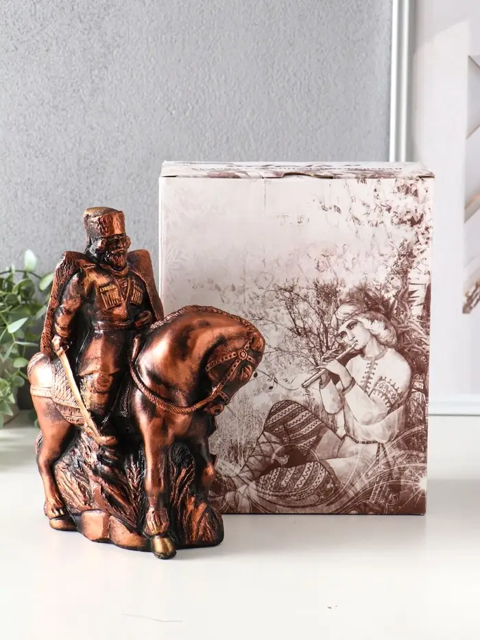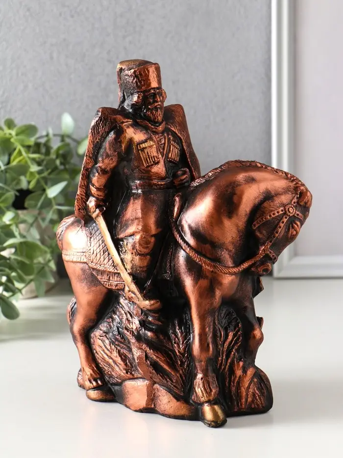 Значение в интерьере и в подарок: Скульптура вносит в кабинет или гостиную атмосферу истории и мужества. Это осмысленный презент на 23 Февраля, День России или в знак уважения коллеге, начальнику, коллекционеру. «Атаман на коне» — не просто украшение, а дань уважения традициям и волевому духу.