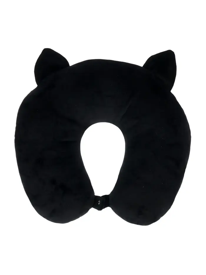 Мягкий котик-подушка — это идеальный спутник для отдыха дома или в путешествии. Его чёрный искусственный мех и милые ушки создают атмосферу тепла и уюта, делая его не только стильным аксессуаром, но и удобной поддержкой для сна.