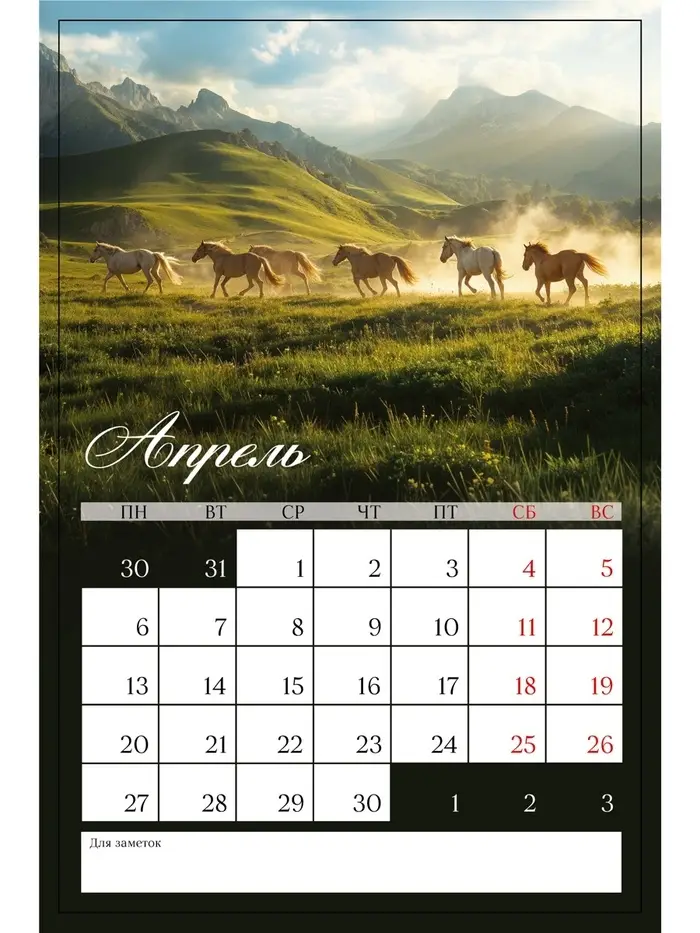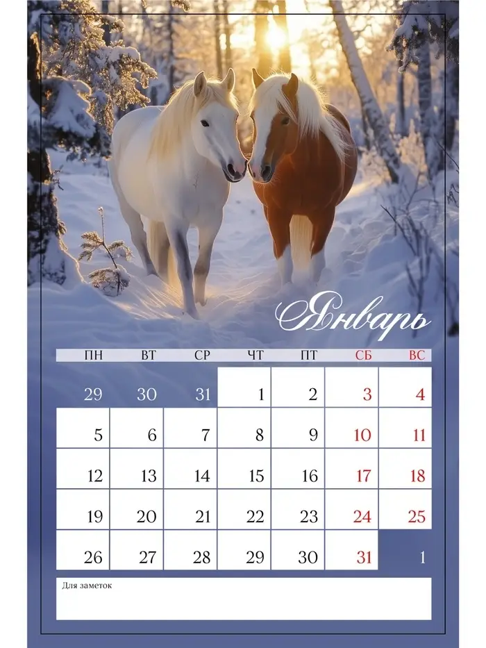 Календарь 2026 на ригеле «Тройка лошадей»
