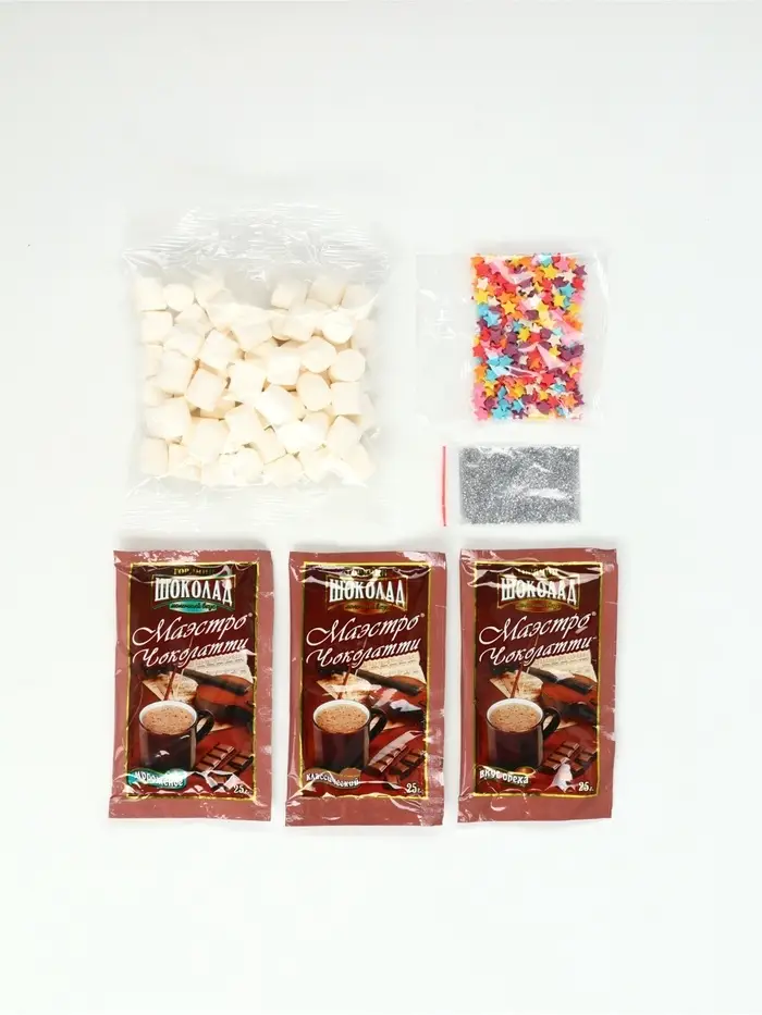 Набор с горячим шоколадом 3 шт, маршмеллоу и декором "Пряничный домик"