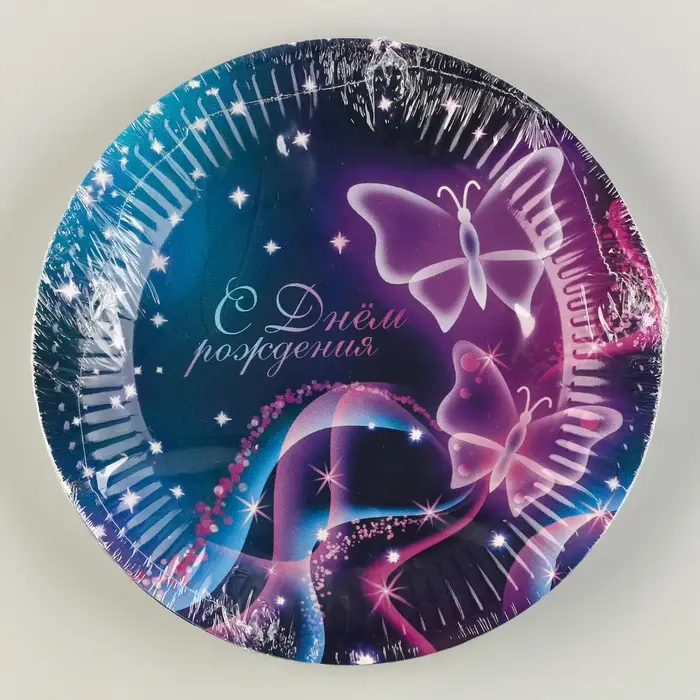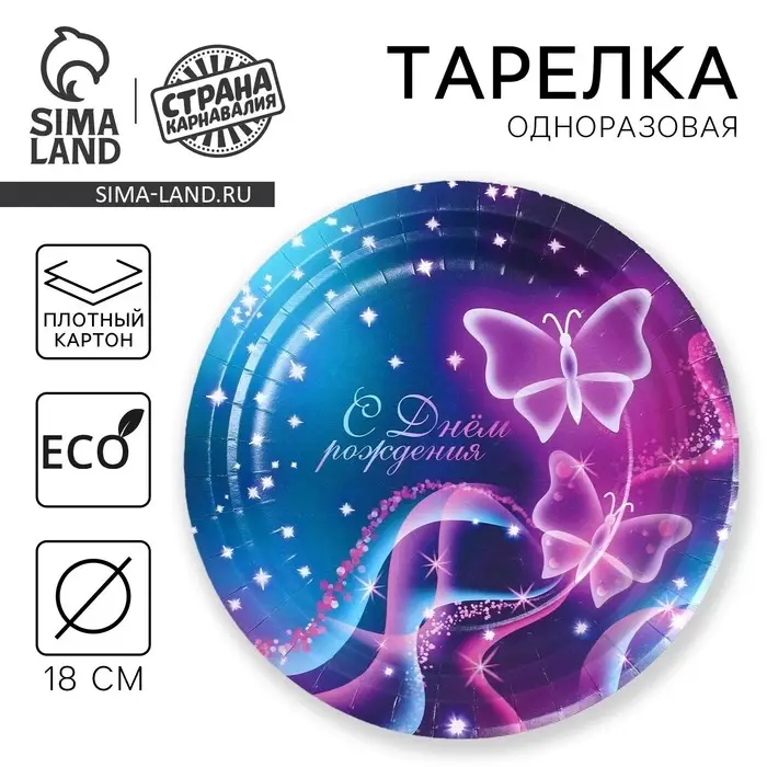 Тарелка одноразовая бумажная «С Днём Рождения», 18 см