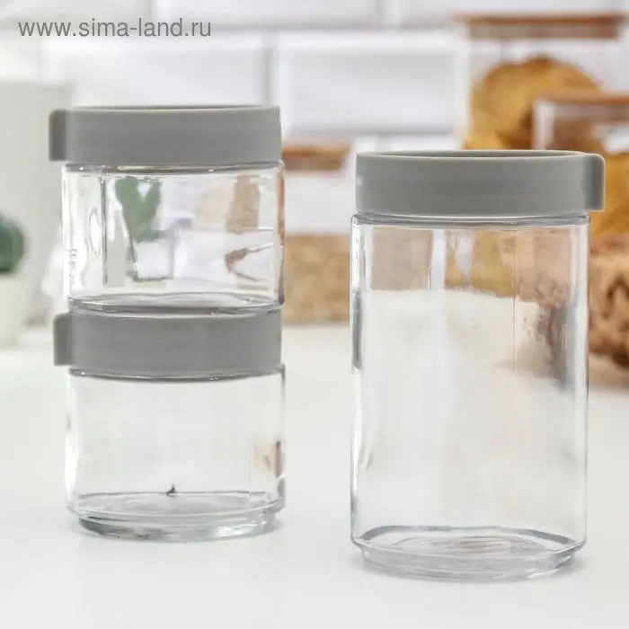 Банки стеклянные для хранения сыпучих продуктов «Модерн», 3 предмета: 320/320/700 мл, пластиковая крышка, цвет серый