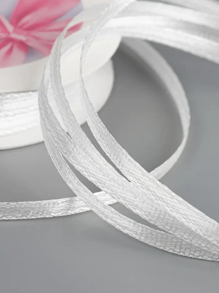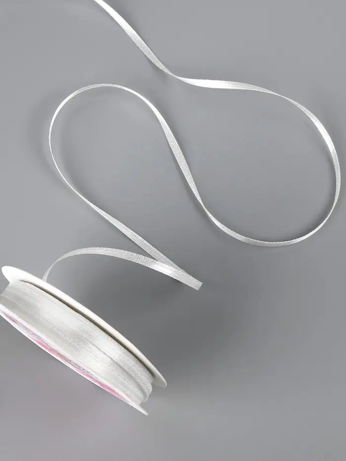 Лента атласная, 3 мм, 45±1 м, белая №01