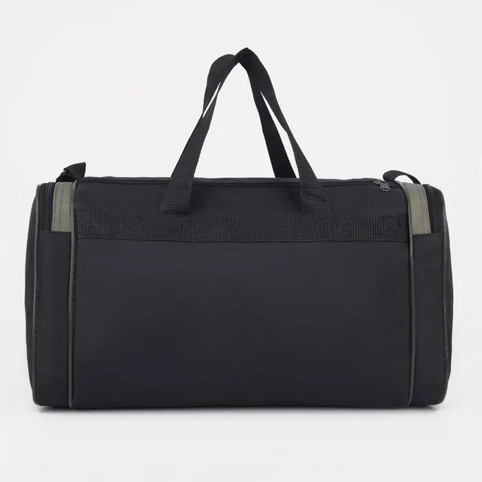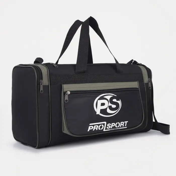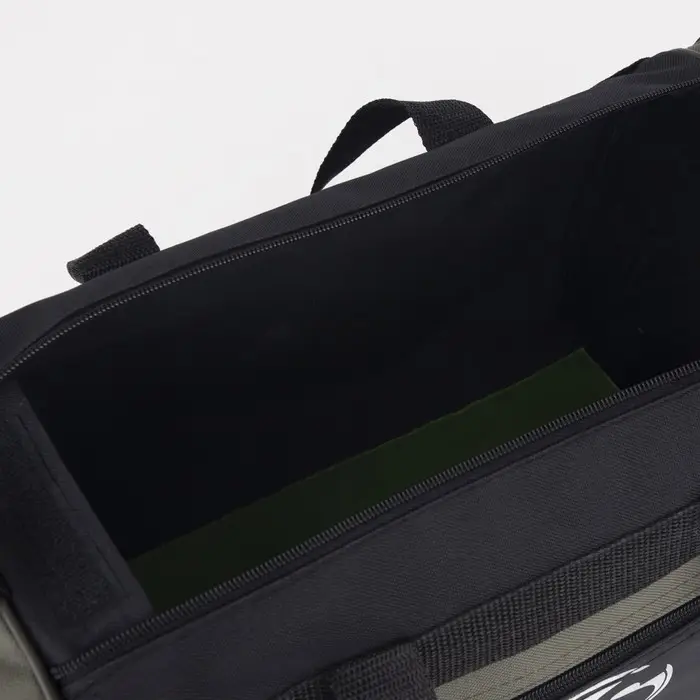 Сумка спортивная на молнии, 3 наружных кармана, длинный ремень, цвет чёрный/хаки