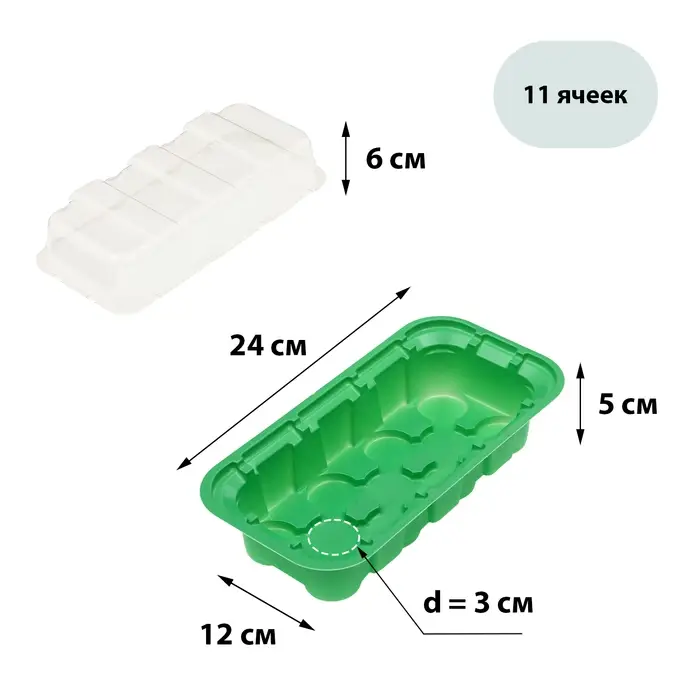 Мини-парник для рассады, 24×12×11 см, 11 ячеек под таблетки для рассады d=3 см, пластик, Greengo