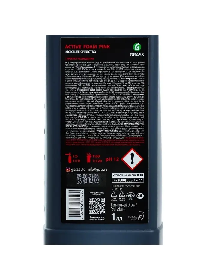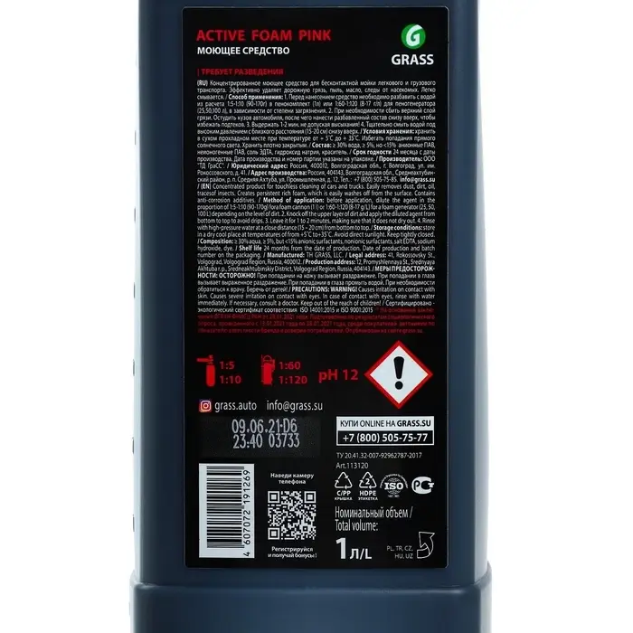 Шампунь для бесконтактной мойки Grass Active Foam Power, 1 л (1:60-1:125)