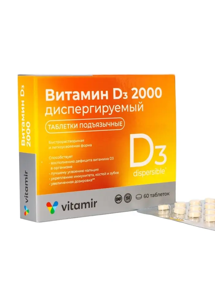Витамин Д3 ВИТАМИР 2000 МЕ, диспергируемый, таб. для рассасывания №60