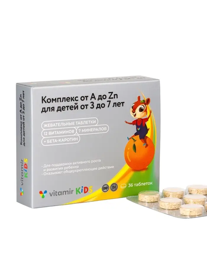 Мультивитамины для детей от 3 лет до 7 Премиум От А до Zn ВИТАМИР, жев.таб. №36