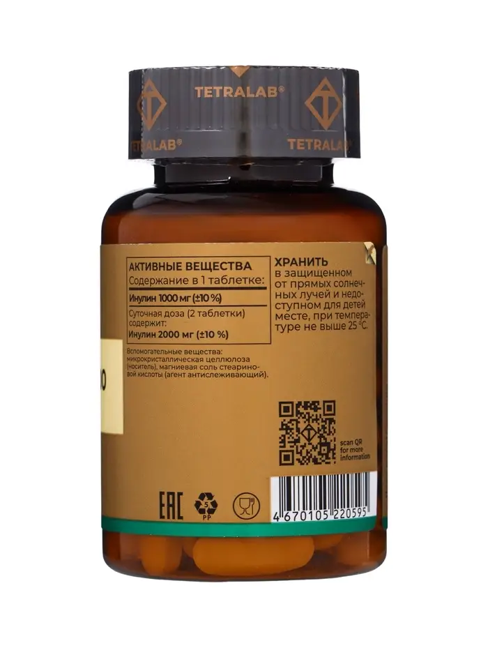 Пребиотик Инулин TETRALAB, улучшение работы кишечника и пищеварения, 1000 мг, 60 таблеток
