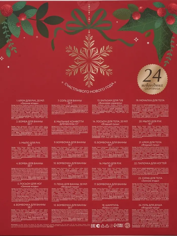 Адвент-календарь косметики Happe New Year, 24 предмета, URAL LAB