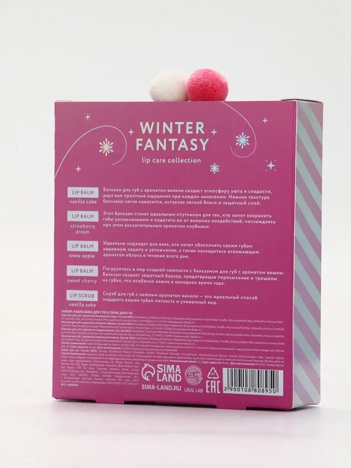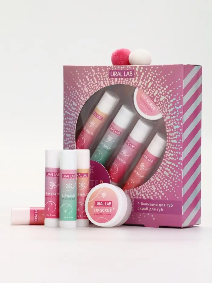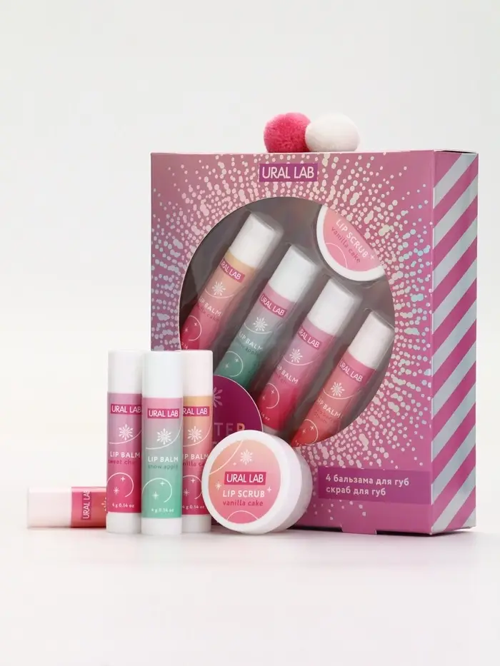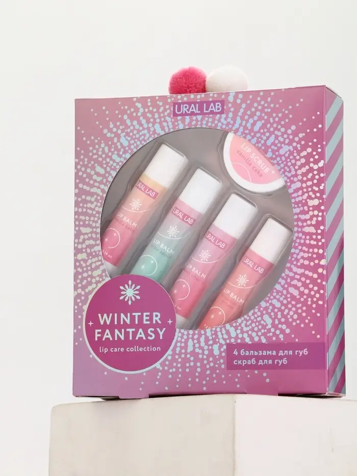 Подарочный набор новогодний Winter Fantasy, 4 бальзама и скраб для губ, URAL LAB