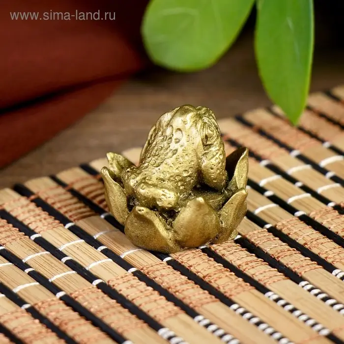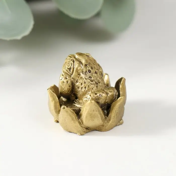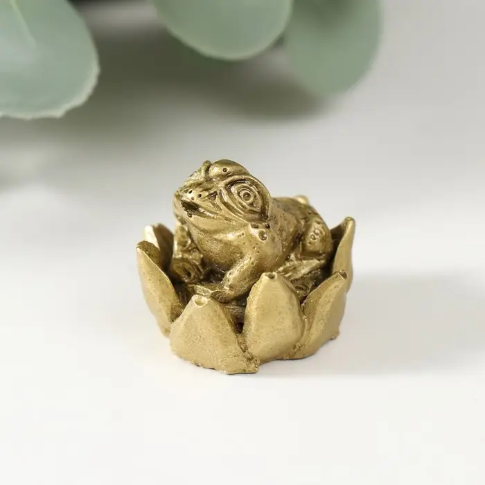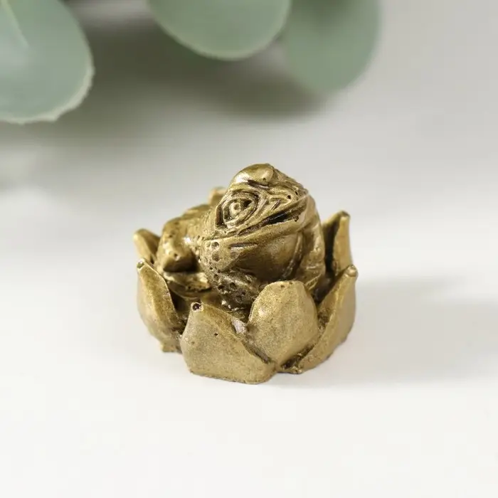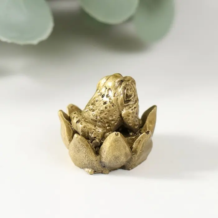Нэцке полистоун бронза "Маленькая жаба в лотосе" 2,5х2,5х2,5 см
