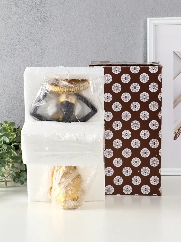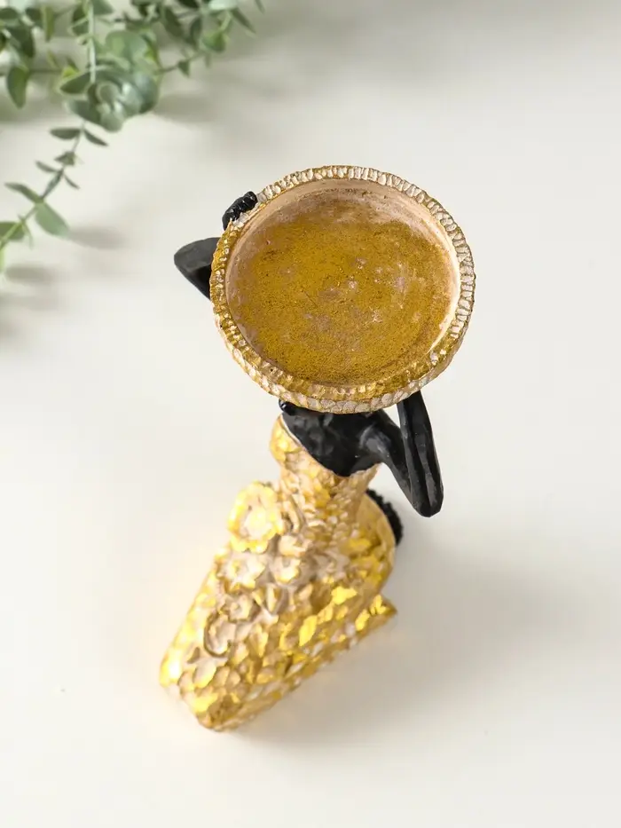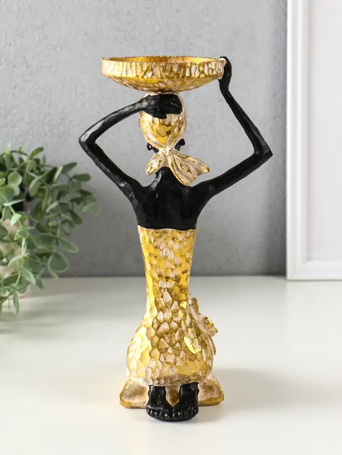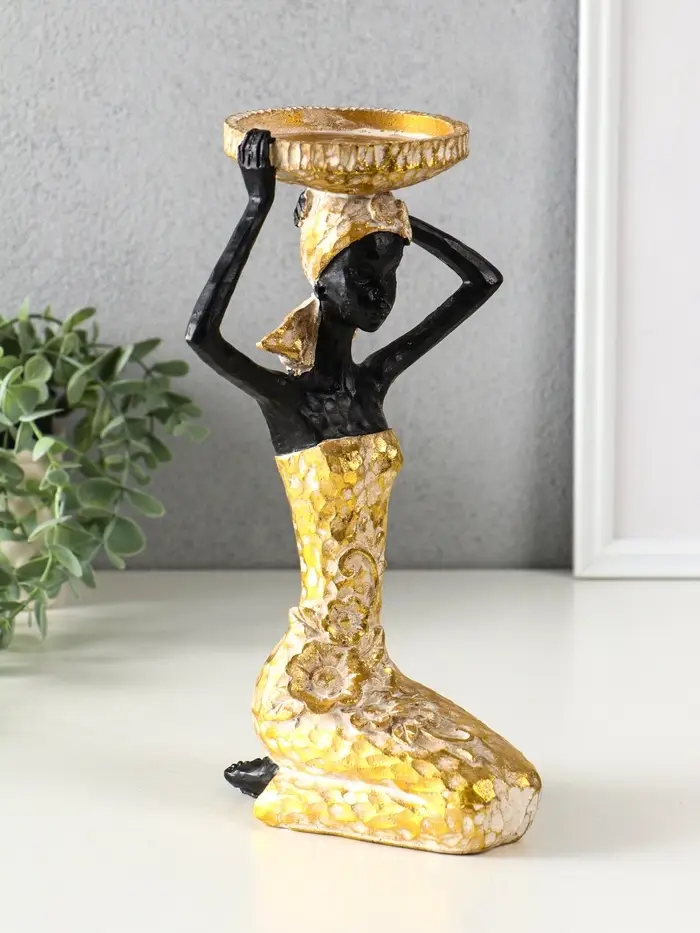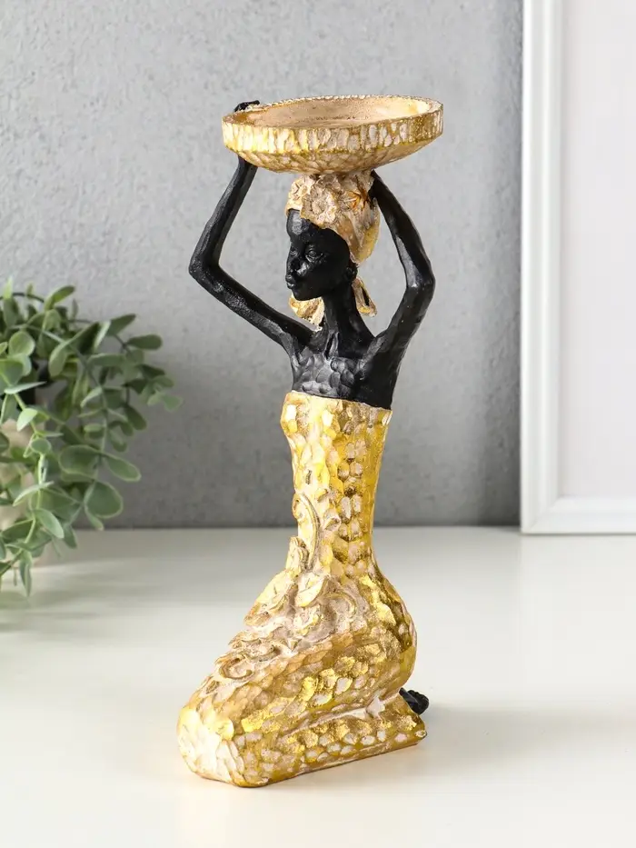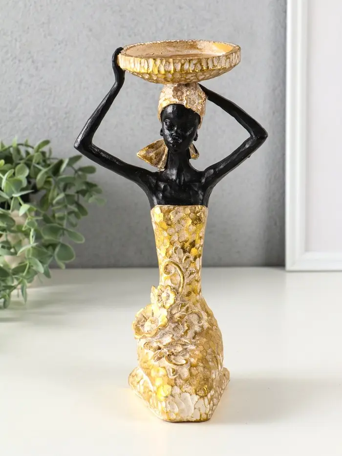 Подсвечник полистоун "Африканка в косынке с цветами" золото d=8 см 14х15х27,5 см