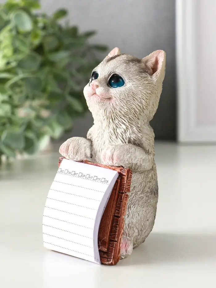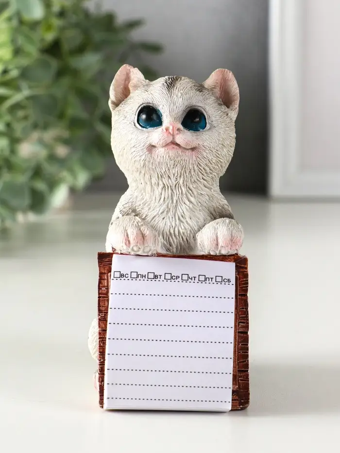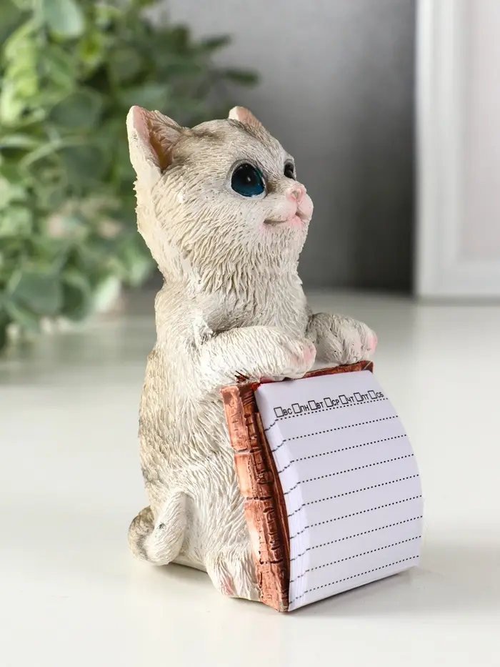 Сувенир полистоун с блокнотом 20 листов "Серый котик" 6,5х5х11 см