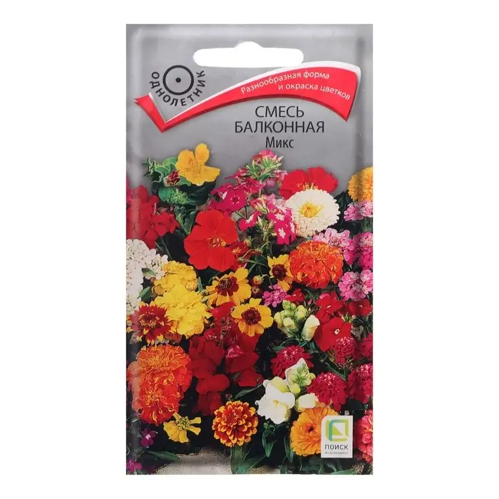 Балконная смесь представляет собой набор семян наиболее эффектных и простых в уходе цветов для высадки на балконе, подоконниках или мини-клумбах в кашпо. Все растения подобраны таким образом, чтобы составлять яркую цветочную композицию и зацветать в одно время. Высота их составляет не более 25 см. Рекомендуется высаживать в открытый грунт в мае. Период цветения начинается с июля. Являются однолетними.