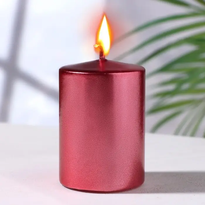 Свеча - цилиндр парафиновая, красный металлик, 4×6 см