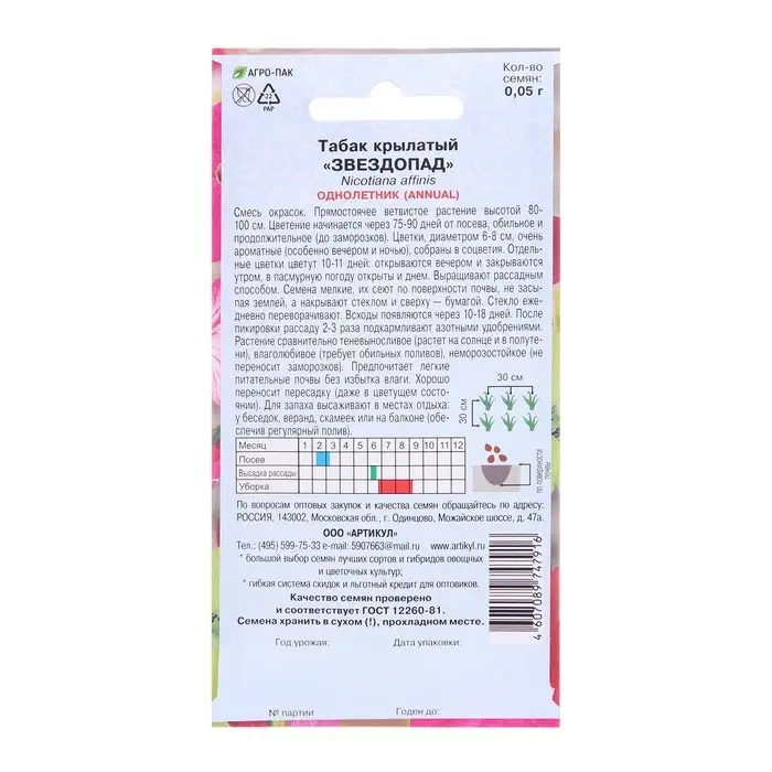 Семена цветов Табак "крылатый Звездопад", 0,05 г
