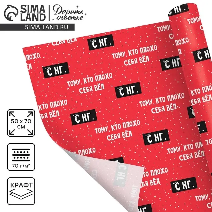 Бумага упаковочная крафтовая «Тому, кто плохо себя вёл», 50 х 70 см