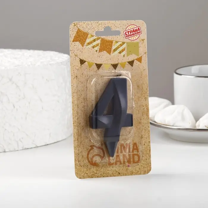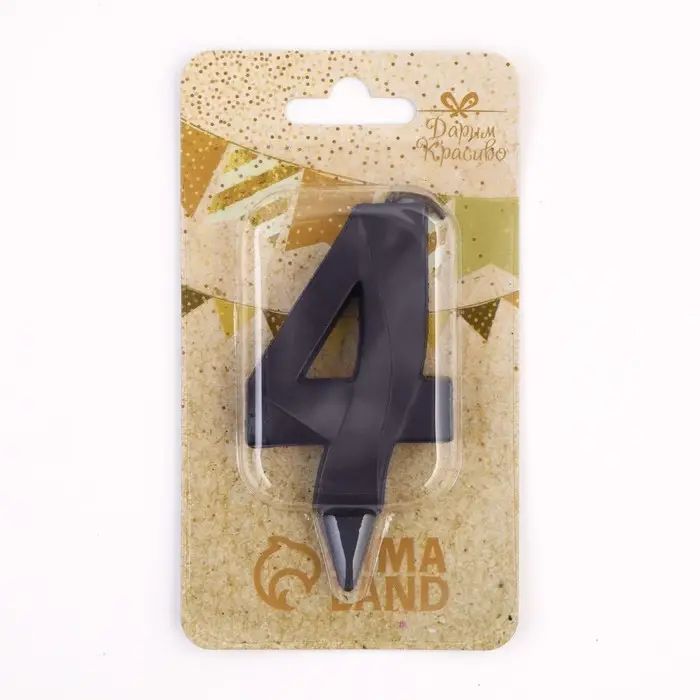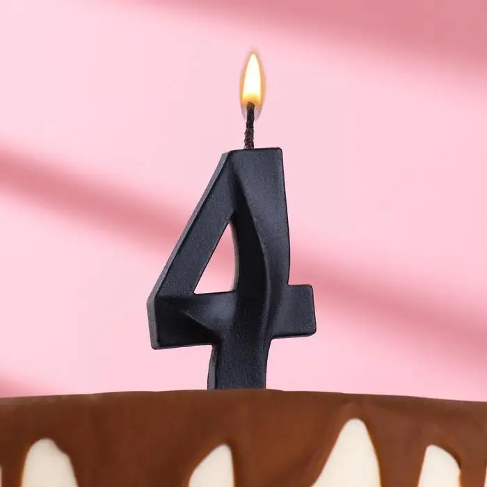 Свеча в торт «Грань», цифра 4, черный металлик, 6.5 см
