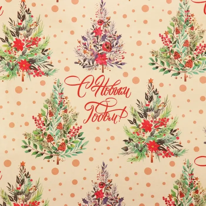 Новый год. Бумага упаковочная крафт "С новым годом!",1 лист, 70 х 100 см