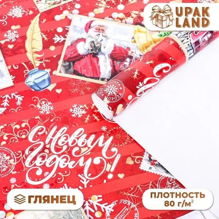 Бумага упаковочная глянцевая «Письмо от Санты », 70×100 см