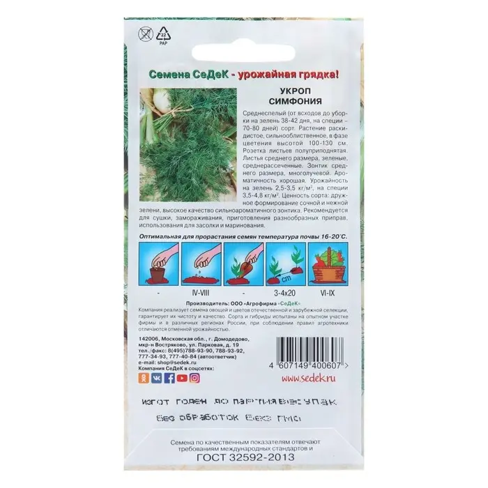 Семена Укроп 1+1 "Грибовский", ц/п, 6,0 г