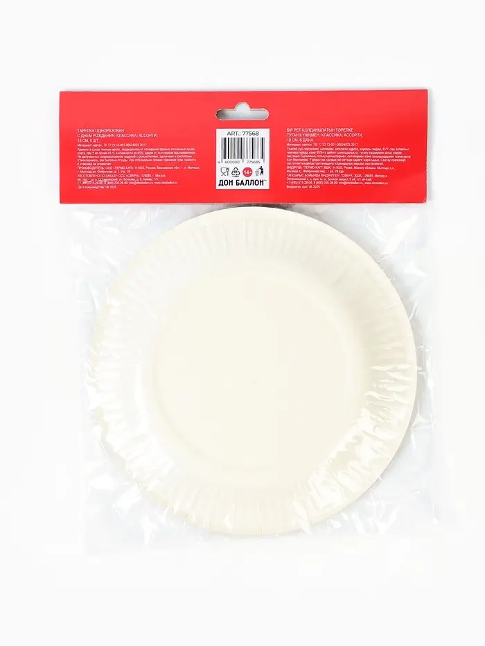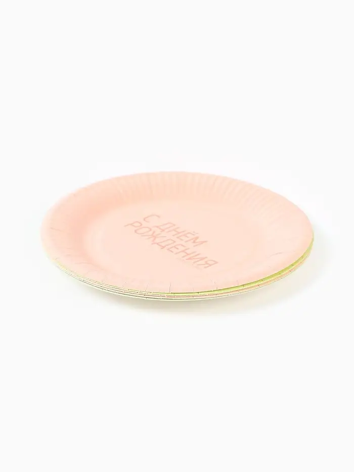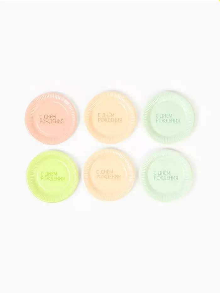 Тарелка С днем рождения, микс нежный 18см 6 шт