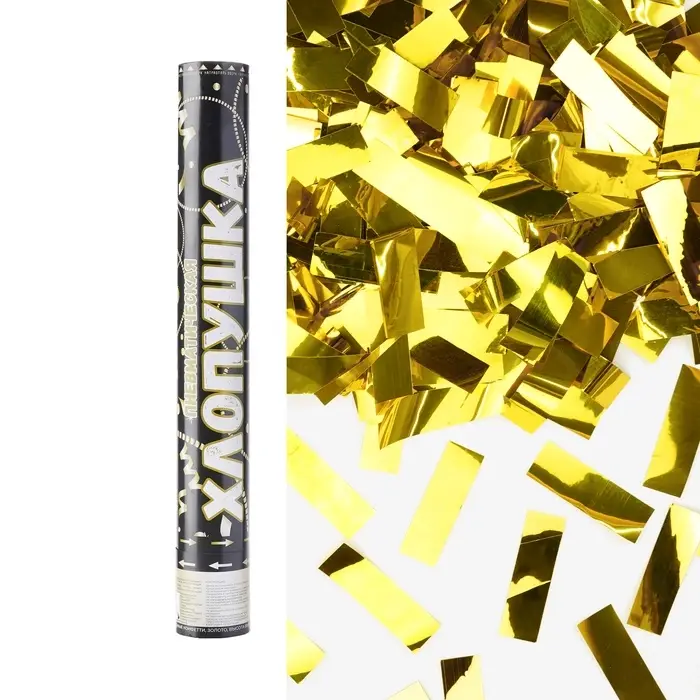 Хлопушка пневматическая "Прямоугольники" фольга, золото, металлик (16/40 см)