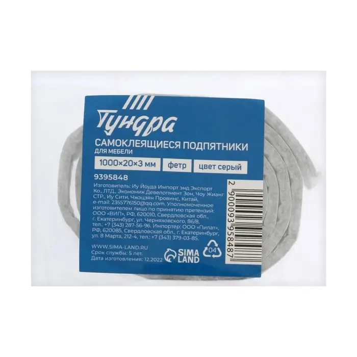 Самоклеющиеся подпятники для мебели ТУНДРА 100х2х0,3 см., фетр, цвет серый