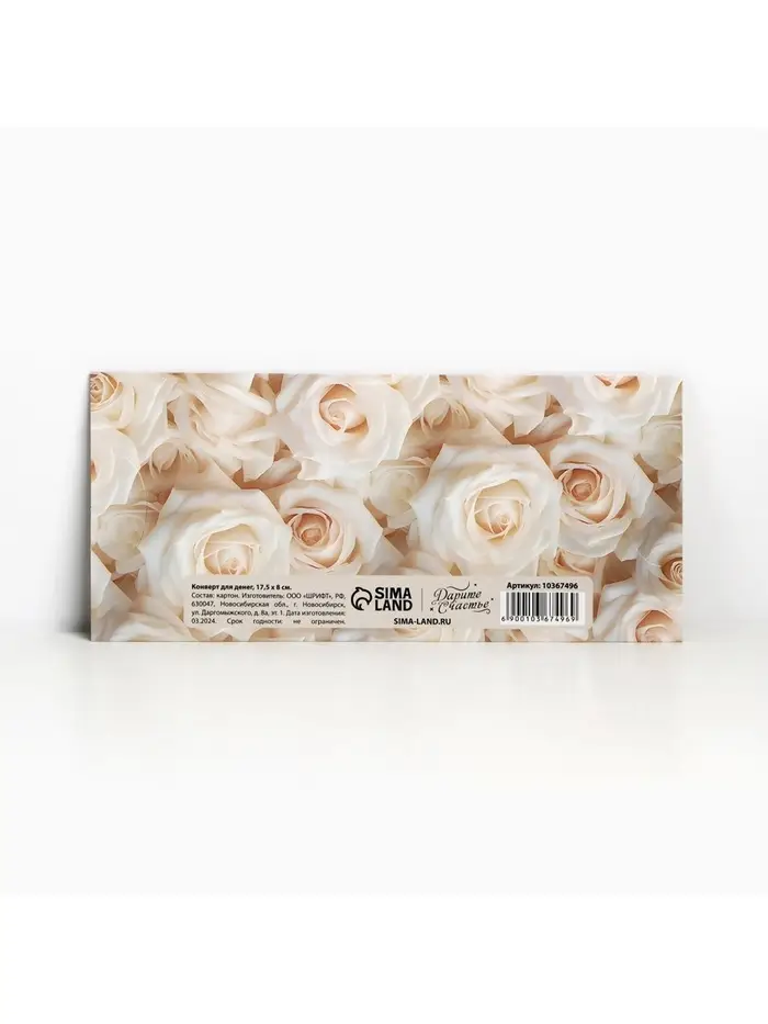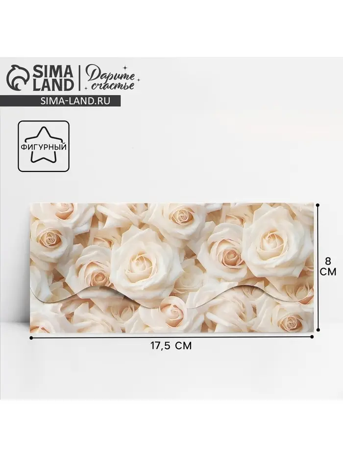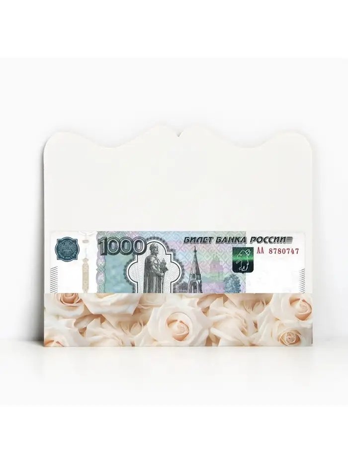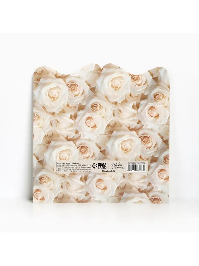 Конверт для денег фигурный «Белые розы», 17.5 х 8 см