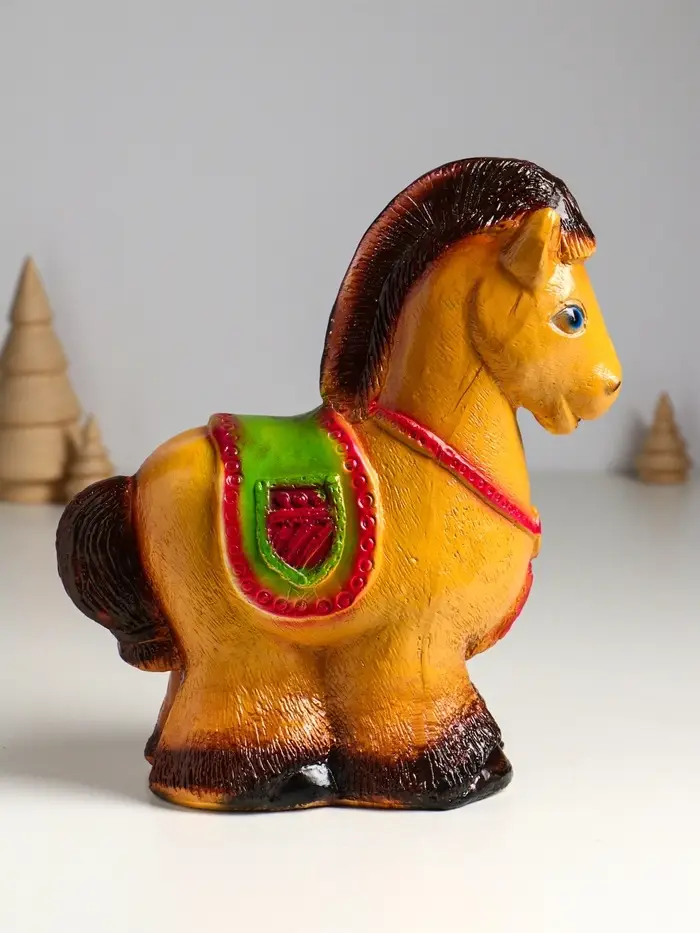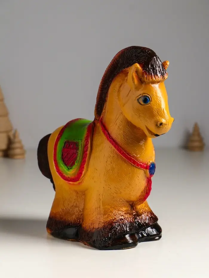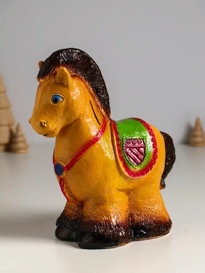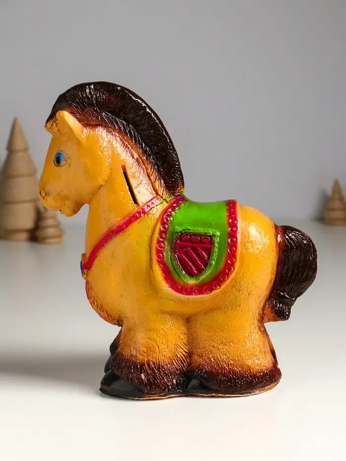 Эта гипсовая копилка в виде лошади — не просто сувенир, а верный помощник в ваших сбережениях. Фигурная лошадка с тёплым коричневым покрытием станет элегантным украшением интерьера и символом финансовой стабильности, приносящим удачу.