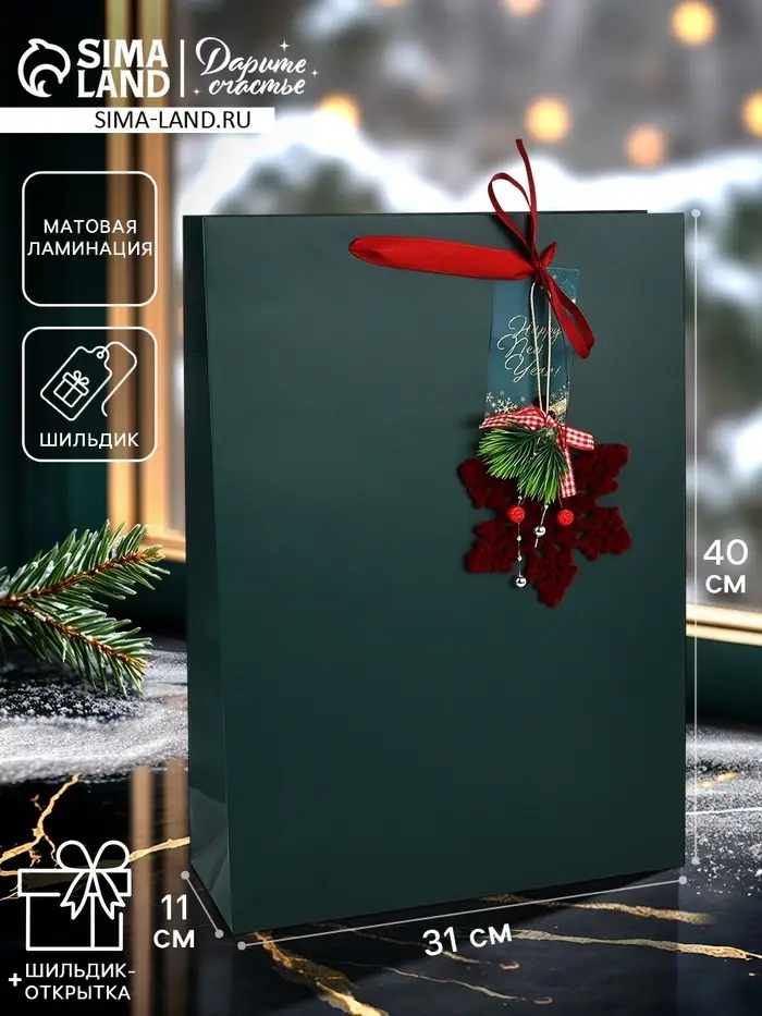 Пакет подарочный «С Новым годом», с ёлочной игрушкой, 31 × 40 × 11 см