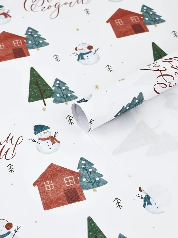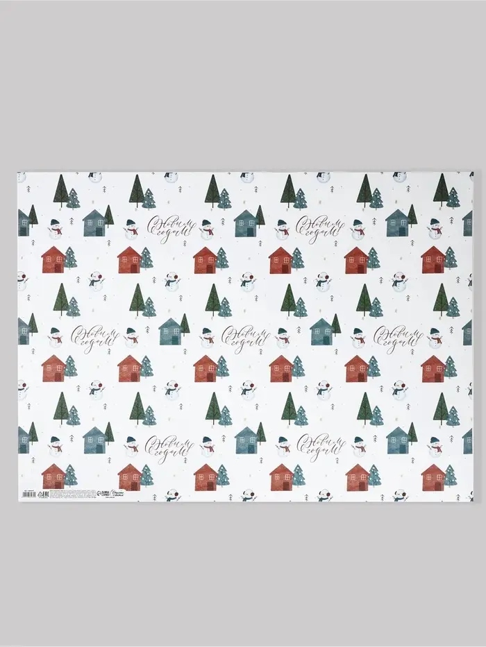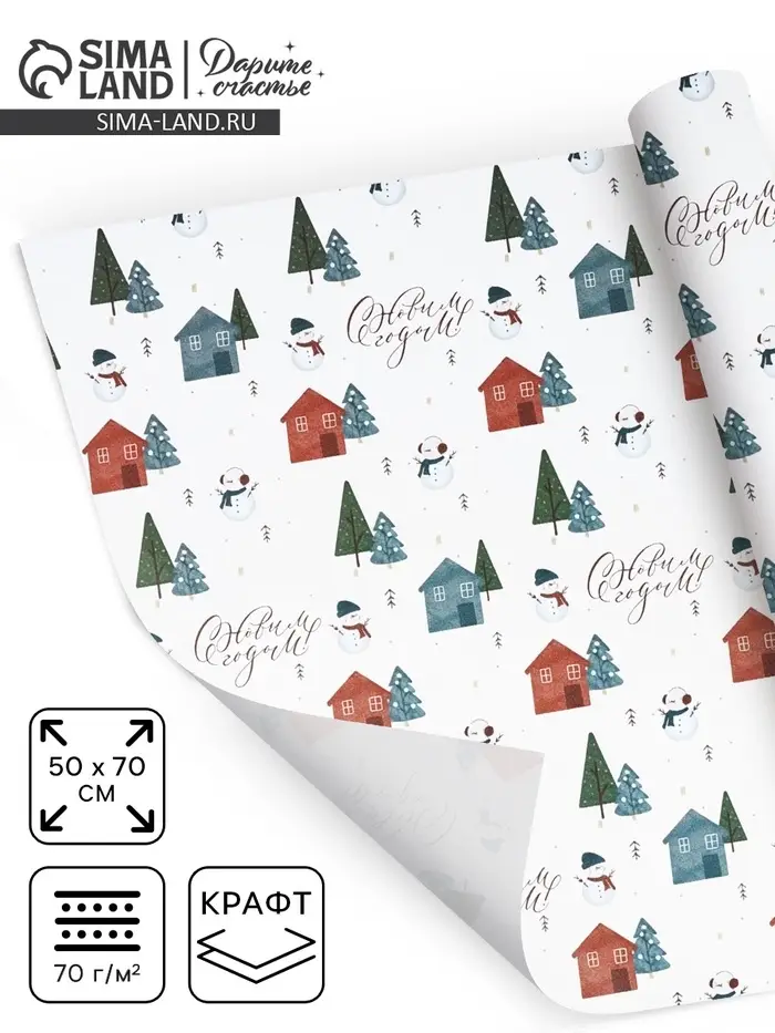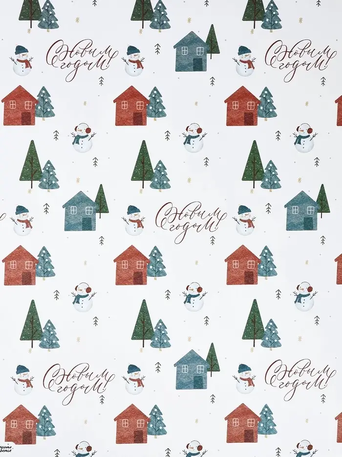 Бумага упаковочная новогодняя крафтовая «Снеговики», 50×70 см