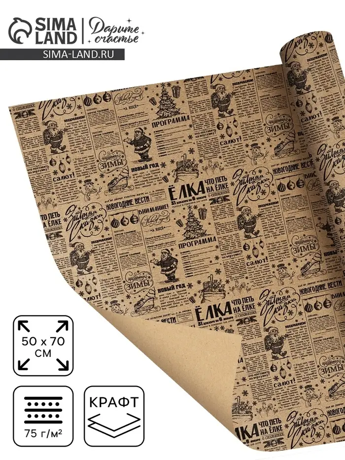 Бумага упаковочная бурый крафт «Советская газета», 50×70 см