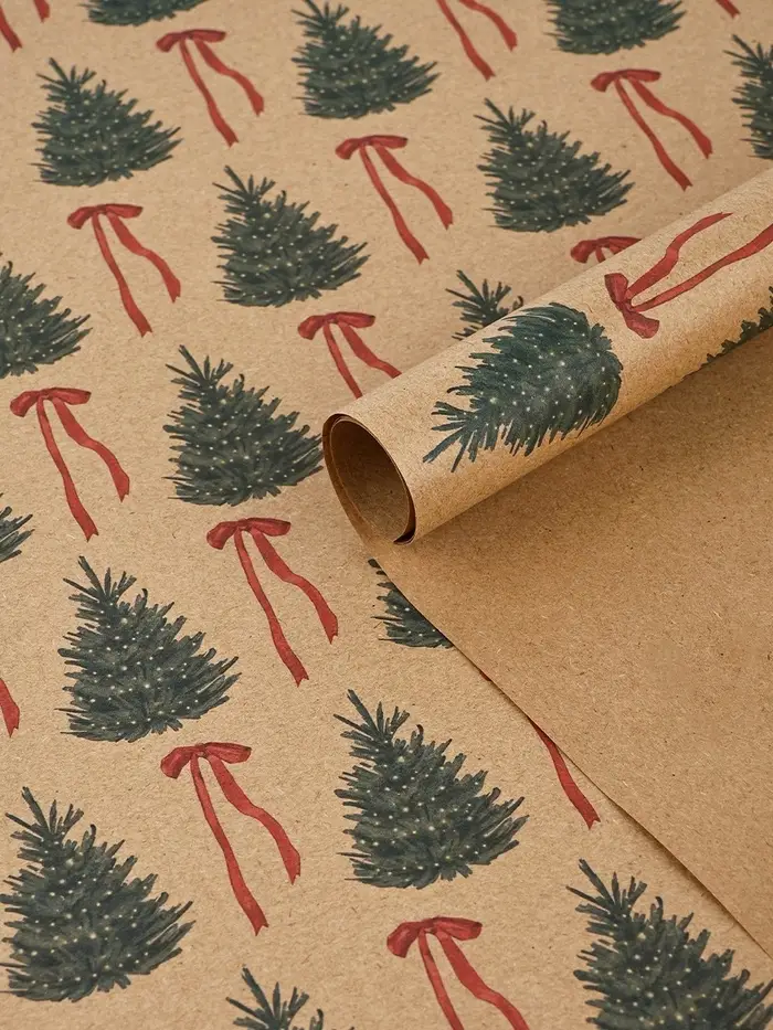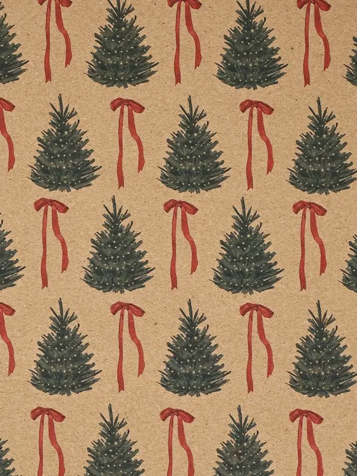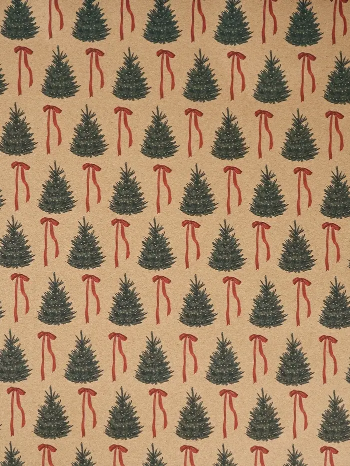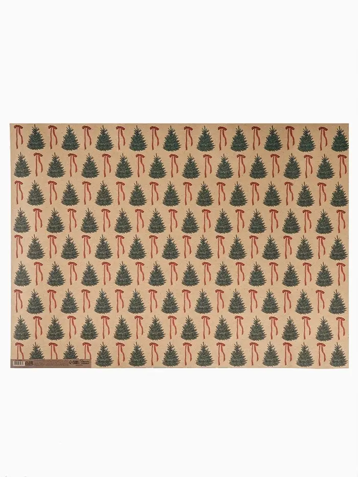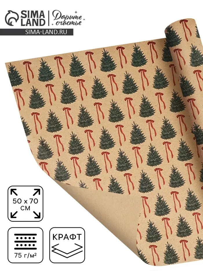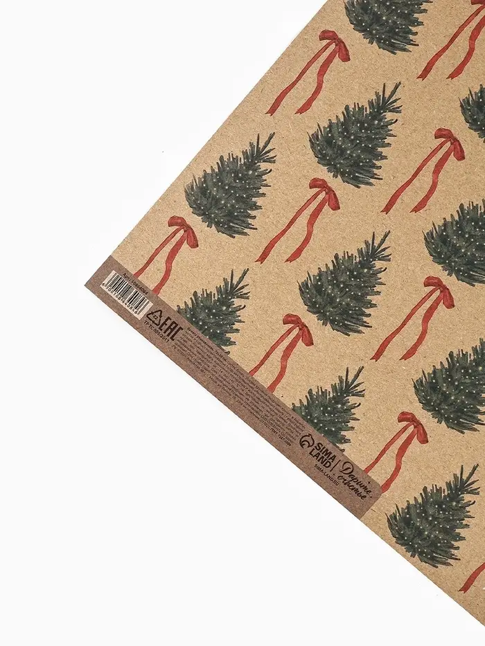 Бумага упаковочная бурый крафт «Ёлки и банты», 50 × 70 см
